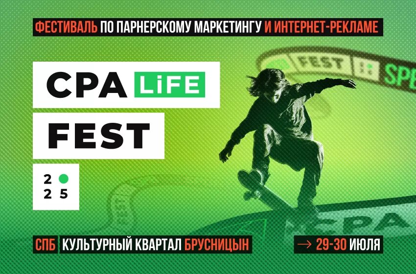 29–30 июля | Санкт-Петербург | Культурный квартал Брусницын Affiliate, лето, спорт, диджитал и музыка — всё это сойдётся в одной точке! CPA LiFE FEST 2025 возвращается в Брусницын с новыми идеями, подходами и ощущением. 12 000 м² для нетворка, бизнеса и ярких встреч, 3000+ участников, 40+ спикеров, 2 дня насыщенной программы и атмосфера, которую не передать в сторис. 2 дня насыщенной программы для медиабайеров, рекламодателей, партнерских сетей и специалистов по партнерскому маркетингу: — Деловой блок: 40+ спикеров, 6 сессий, интервью-панель с экспертами, круглые столы, деловые шоу и панельные баттлы между практиками CPA. — Медийный блок: каждая секунда фестиваля в live-режиме — прямые эфиры, интервью с участниками, видео и backstage-контент на YouTube и в соцсетях. — Фестивальный блок: 50+ активностей на 30+ уличных локациях, бенды, диджеи,шоу-артисты, караоке и 2 дня afterparty. А что ещё будет? 🚀 Много спорта Турниры, спорт-парк, CS, волейбол и падел — это про азарт, сближение и пе