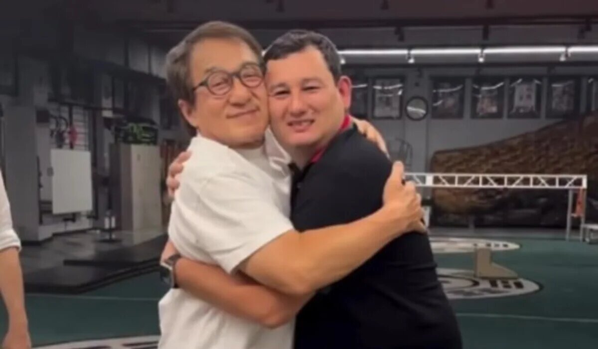 Казахстанский актер обнялся с легендарным Джеки Чаном (ВИДЕО)