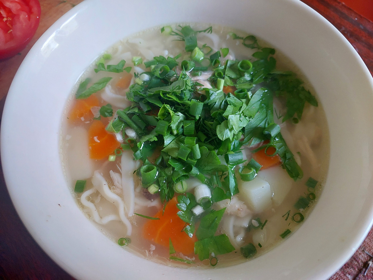 Сегодня у нас на обед был суп-лапша. Это, наверное, один из тех супов, которые любят все, особенно дети. Он такой домашний, ароматный, с мягкой лапшой и нежной курочкой. Лапшу идеально сделать самой 🙂, но у меня сегодня не так много времени, поэтому воспользовалась магазинной. 📝 Что нужно: 🥣 Вода – 3 литра 🐓 Курочка домашняя – любая часть (крылышки, бедро, спинка) 🧅 Лук репчатый – 1 головка (целиком в бульон) 🌿 Лавровый лист – 1–2 листа 🥔 Картофель – 2 штуки 🥕 Морковь – 1 штука 🍜 Лапша – 150 г (можно домашнюю или магазинную) 🧂 Соль – по вкусу ⚫ Перец чёрный молотый – по вкусу 🌱 Зелень для подачи – петрушка, укроп, зелёный лук 🍽 Как готовить: 1️⃣ В 3 литра воды положила курочку, луковицу и лавровый лист. 2️⃣ Варила бульон до готовности мяса. 3️⃣ Курочку вынула, мяско сняла с косточек и отправила обратно в бульон. 4️⃣ Добавила 2 картофелины и морковь нарезанные кубиками. 5️⃣ Когда овощи почти сварились, засыпала лапшу (примерно 150 г), посолила, поперчила по вкусу. 6️⃣ Ва