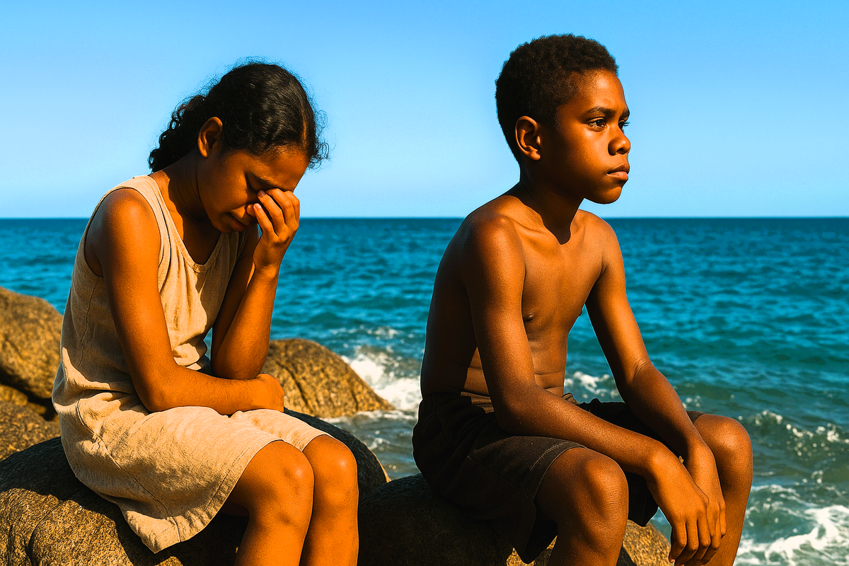 Скала, куда их принесло, не имела даже названия. Ни деревьев, ни тени, ни воды. Только острые камни, которые ранили руки и ноги. Дети прижались друг к другу, пытаясь согреться, и заснули под звёздным небом и солёным ветром.