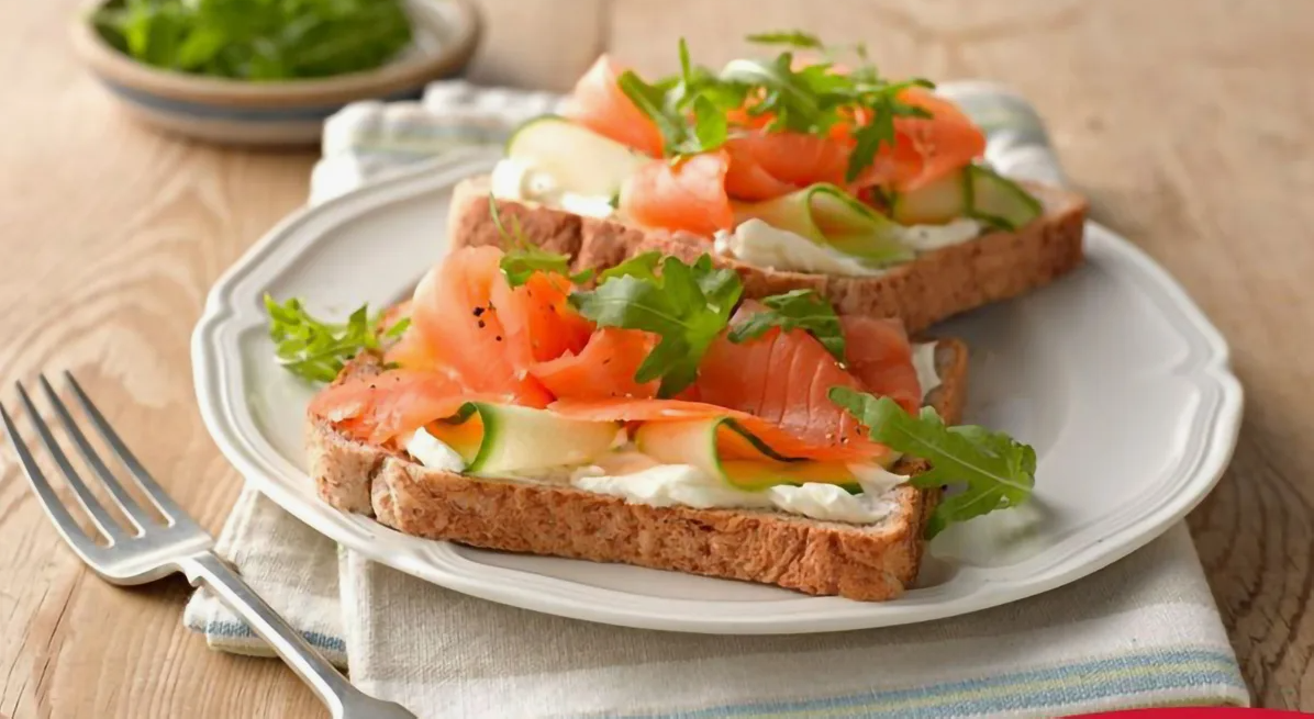 Итак понедельник и вторник на утром у меня бутерброды с рыбой, творожным сыром и огурцами.