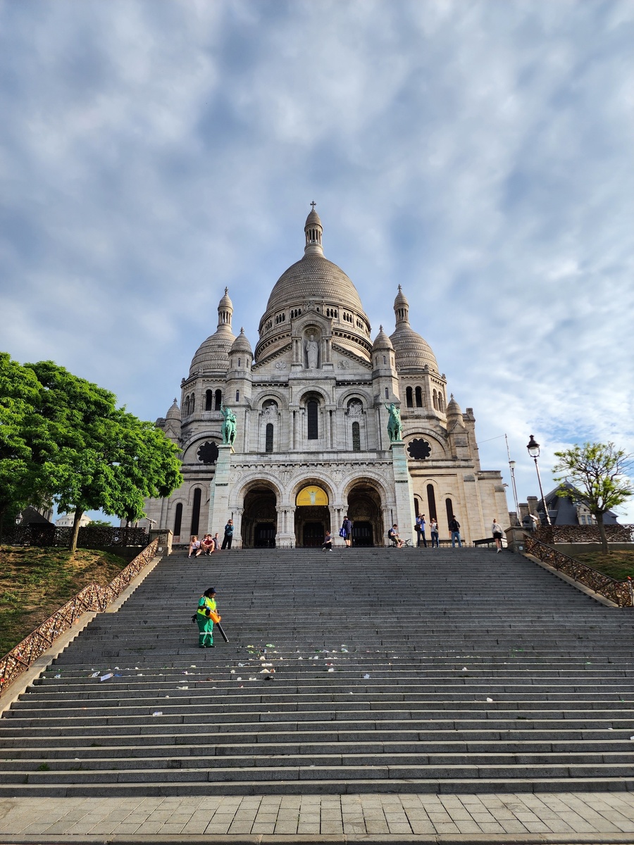 Многие спрашивают - чисто ли в Париже? Много ли мусора? Как с санитарными нормами? Не бегают ли по улицам огромные чёрные крысы, начинённые чумными блохами? Если честно, меня эти вопросы немного удивляют. В том смысле, что Париж прекрасен, многолик и необъятен. Неужели вопросы бытовых отходов - это единственное, что вас в нём интересует?! Это как про Петербург спрашивать: а правда ли, что в самом центре, в исторических домах существуют отвратительные коммуналки? А как там с сохранением исторического наследия? А фонтаны с кипятком в период отопительного сезона в самых неожиданных местах открывают? Таки да, всё это имеет место. Но разве от этого мы Питер меньше любим? Но да ладно. По просьбе трудящихся, как говорится, обсудим тему мусора. Да, мусор встречается. Но достаточно оперативно убирается. И вот это фото - прекрасная иллюстрация. Это базилика Сакре-Кёр, одна из самых популярных у туристов достопримечательностей Парижа. Наверное, на 3-м месте - после Эйфелевой башни и Нотрдама. Вре