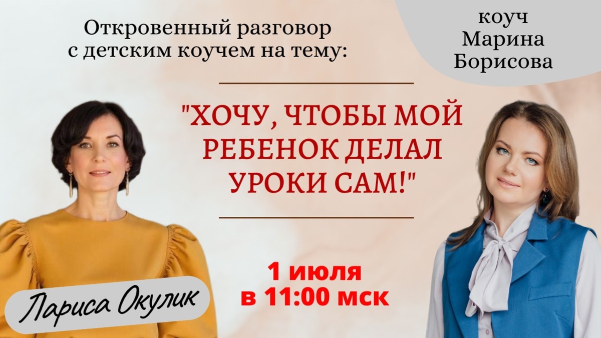 Хотите, чтобы ребенок самостоятельно делал уроки и вы не переживали бы за результат? Приходите завтра, 1 июля, в 11:00мск на интервью с профессиональным детско-родительским коучем Мариной Борисовой в нашем Телеграмм канале для родителей https://t.me/for_parent: Марина расскажет: - Почему некоторые дети могут делать уроки самостоятельно, а некоторым нужна поддержка родителей? - К какому возрасту точно нужно «переложить» обязанность по выполнению домашних заданий на самого ребенка? - Три действия, которые можно сделать уже сейчас, чтобы ребенок начал делать домашние задания самостоятельно Продолжительность интервью – 30 минут. Чтобы не пропустить интервью, поставьте себе напоминание в календаре! #интервьюскоучем #самостоятельность