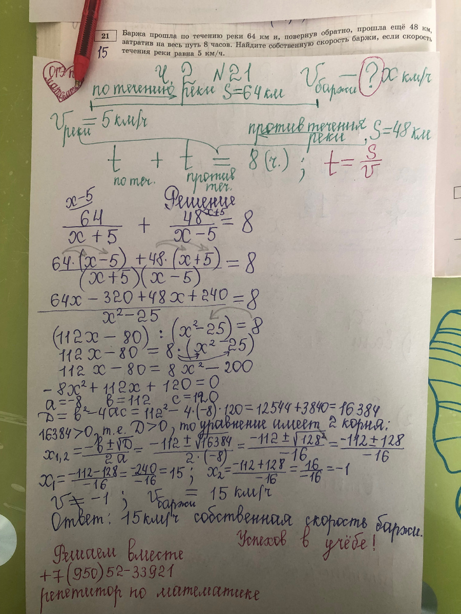 ОГЭ по математике: найти собственную скорость баржи (ч. 1 N 21)