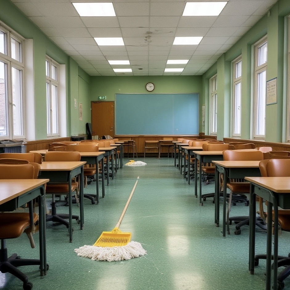 Приёмка школы. Учителя за уборщиц.