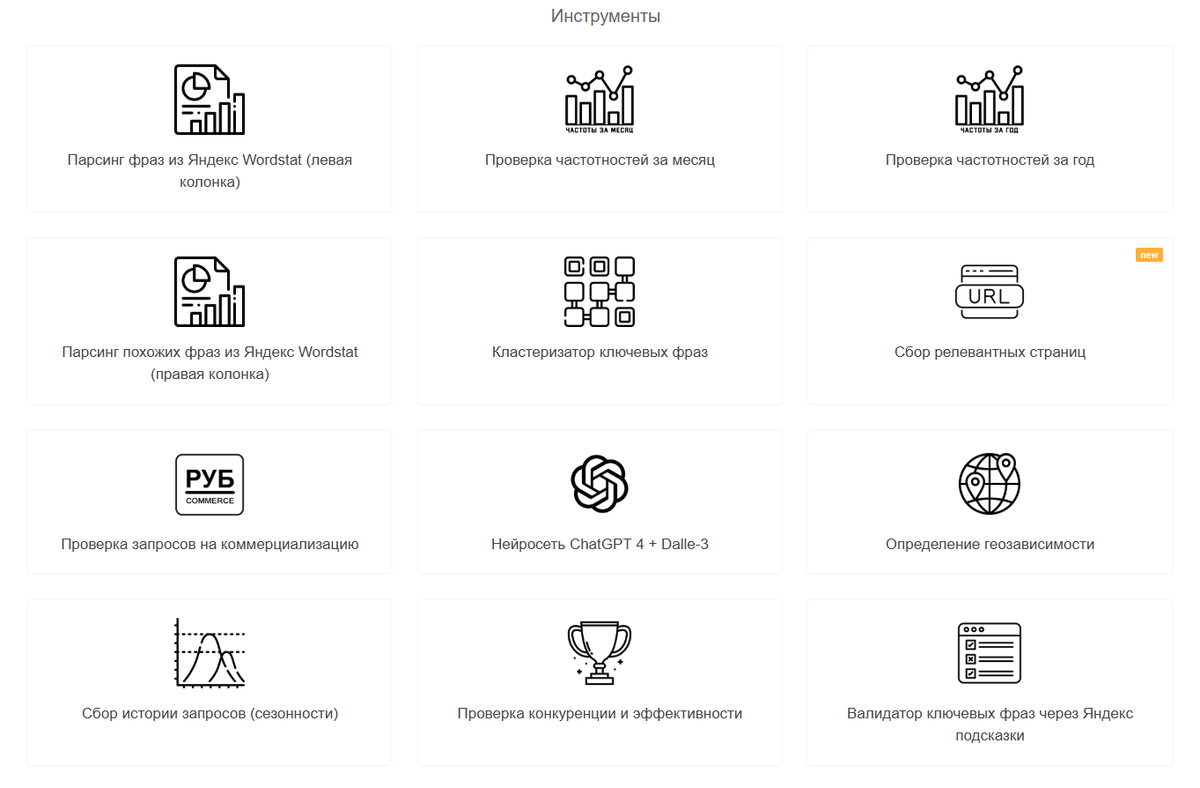 Арсенкин тулз предлагает набор продвинутых инструментов, которые позволяют анализировать и улучшать SEO-стратегии. Начните с Анализа ключевых слов. Этот инструмент помогает находить высокочастотные и низкочастотные запросы, а также определять их конкуренцию. Он настраивается под вашу нишу и дает возможность отслеживать изменения позиций.