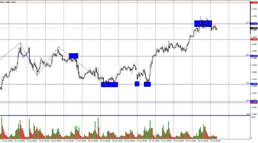Добрый день, уважаемые трейдеры! Пара EUR/USD в четверг продолжала процесс роста и достигла уровня коррекции 127,2% – 1,1712