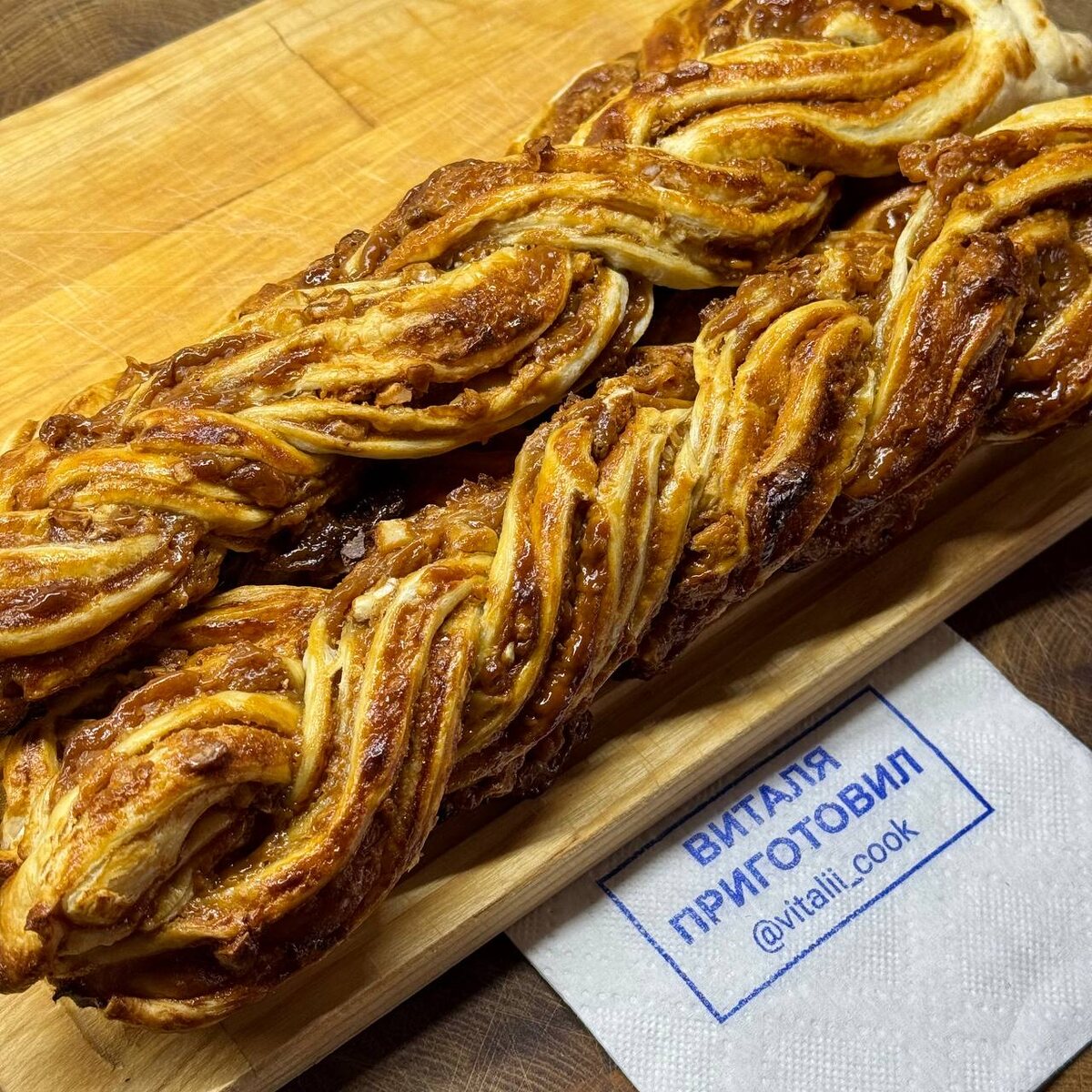 Плетенки с варенной сгущенкой🥐 На 4 шт понадобится: 🥐Слоеное тесто 500 гр (2 пласта) 🥐Сгущенка вареная 350 гр 🥐Грецкие орехи 40 гр (можно больше по вкусу) 🥐Яйцо 1 шт 1️⃣Пласты слоеного теста разделите на 2 части и раскатайте. 2️⃣Каждую часть теста смажьте вареной сгущенкой (примерно по 4 ст.л. с горкой) и присыпьте грецкими орехами. 3️⃣Сверните рулетики и прищипните края. С одной стороны защипните бок рулета и разрежьте его вдоль на две части. Переплетите две части друг с другом, как я показываю на видео и защипните второй край. 4️⃣Переложите плетенки на противень с пергаментной бумагой и слегка смажьте яйцом. 5️⃣Выпекайте на режиме «верх-низ» при 200 градусах 20-25 мин. Приятного аппетита❤️ Видео с приготовлением по ссылке: https://vk.com/clip-225546345_456239235?c=1