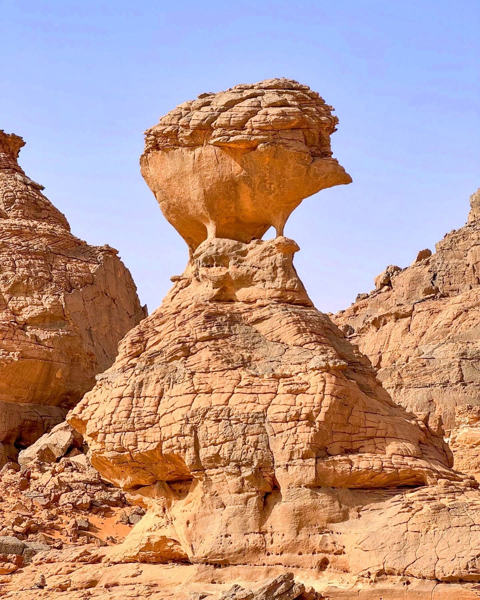 В это трудно поверить, но в Алжире есть скала-еж. В течение сотен лет ветер и дожди преображали песчаник на плато Тассилин-Адджер в пустыне Сахара, пока не получилась вот такая ежовая скульптуру. И без помощи нейросетей! На снимке фотографа Маркуса Вестберга (Marcus Westberg) показан самый выгодный ракурс, где скала выглядит аккурат, как еж. #История_факт