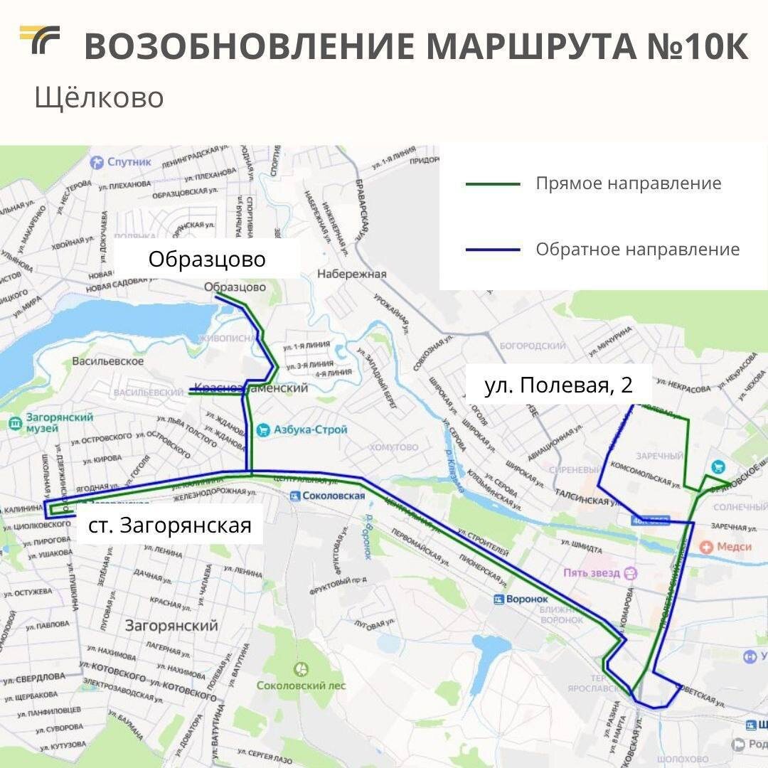 🚌 С 1 июля возобновляется маршрут №10к «Заречный – Образцово – Загорянский» Он обеспечит комфортный проезд для жителей микрорайона Заречный, а также посёлков Образцово и Краснознаменский к станциям Загорянская, Воронок и Соколовская, а также объектам социальной инфраструктуры. Ежедневно автобус будет выполнять 12 рейсов: ➡️ первый – от остановки «ул. Полевая, 2» в 05:55; ➡️ последний – от платф. Загорянская в 18:50. 💳 На маршруте действуют льготы по социальным картам. #дорогищёлково