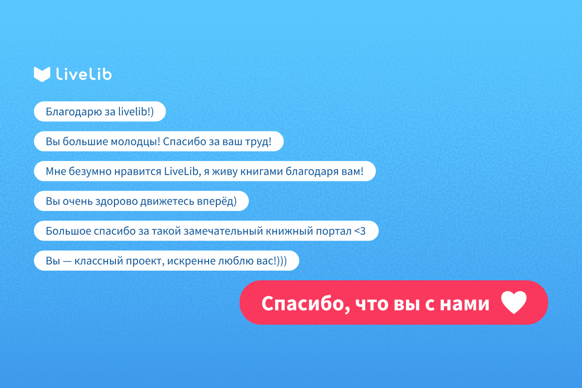 LiveLib — это не просто сайт, а сообщество. Благодаря вам оно живёт, развивается и становится лучше. Мы читали ваши ответы в недавнем опросе — и замирали от тепла. Каждое «спасибо» бесценно. Это не просто слова. Это то, что помогает нам двигаться вперёд. Спасибо, что поддерживаете, читаете и остаётесь рядом 🙏