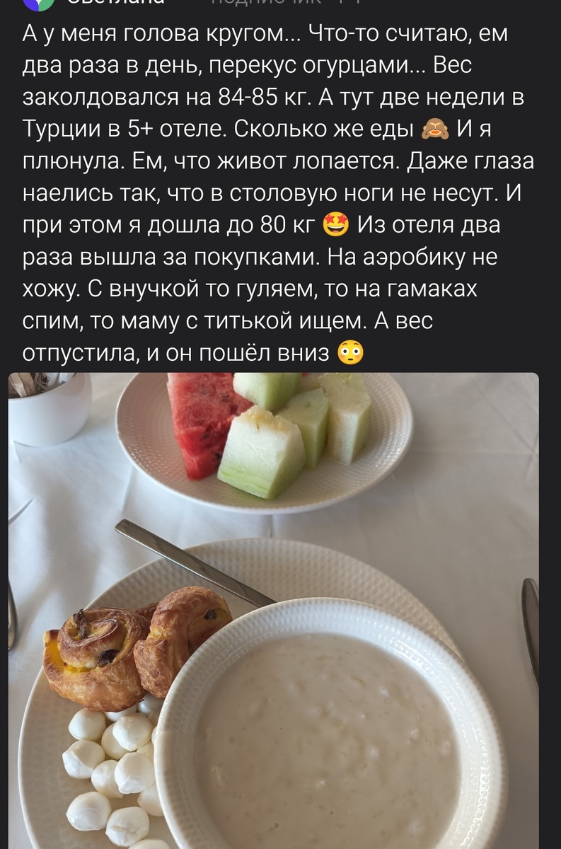 А потом даёшь слабину, ослабляешь пояса, начинаешь лопать все подряд - и вес с вас буквально сваливается.