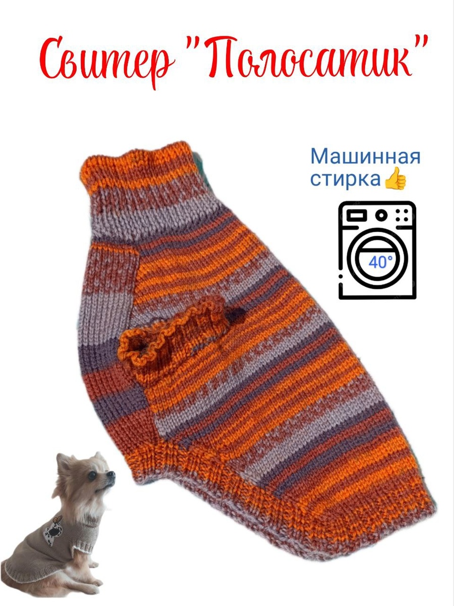 Свитер для собак мелких пород идеально подойдет для вашего любимца. В наличии размер L. Цена 1820 рублей. Длина спинки свитера составляет 32 см, ширина в груди 40-42 см, что делает его идеальным выбором для собак с подобными параметрами. Прогулки теперь станут еще приятнее благодаря мягкости и удобству этого свитера. Он изготовлен из качественных материалов, которые не вызывают раздражения и обеспечивают максимальный комфорт вашему четвероногому другу. Состав пряжи: 75% шерсть superwhash, 25% полиамид. Этот свитер легко надевается и снимается, что делает процесс одевания вашего питомца простым и быстрым. Вы можете быть уверены, что ваш питомец будет выглядеть модно и элегантно, независимо от погоды. Уход за свитером не потребует много усилий: его можно стирать вручную или в стиральной машине на деликатном режиме, сохраняя его первоначальный вид на долгое время.