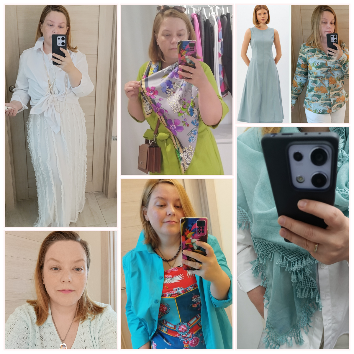Выбор цветовой гаммы в одежде напрямую зависит от времени года, и это не просто мода — это вопрос комфорта и гармонии с собственным образом. Холодная палитра летом Летом, когда солнце щедро одаривает нас теплом, холодная цветовая гамма в одежде становится настоящим спасением. Пастельные оттенки голубого, зелёного, фиолетового и розового создают ощущение свежести и лёгкости. Они прекрасно отражают солнечные лучи и не создают эффекта перегрева. А ещё в моем любимом бирюзовом цвете они не плохо так молодят мое лицо. Ношение холодной палитры летом не только визуально охлаждает образ, но и выгодно подчёркивает летний загар. Холодные оттенки на фоне тёплого летнего солнца создают приятный контраст, который освежает лицо и делает его цвет более здоровым и сияющим. А теперь смотрите разницу. Одна рубашка и разные платки. Один даёт впечатления холода, другой тепла и лучше подходит для теплого времени года. Тёплая палитра зимой Зимой, когда температура падает, тёплая цветовая гамма становится