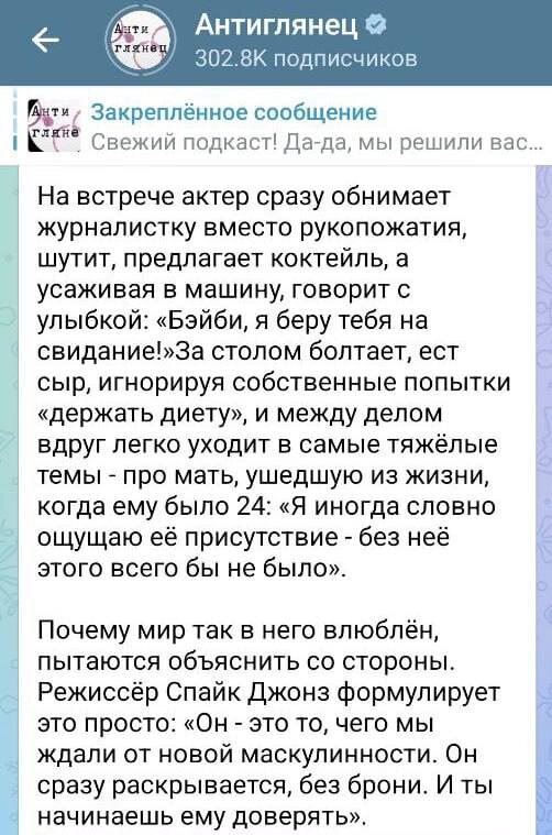По описанию складывается впечатление, что Педро Паскаль — «профем котик», который через пару лет может появиться на канале «прошмандовцы Голливуда» 🫣