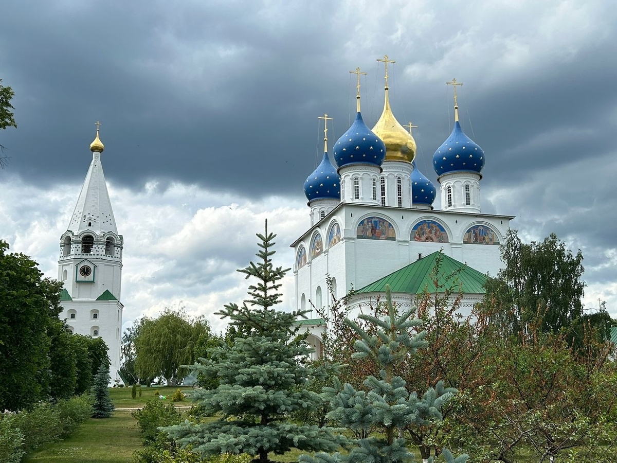 Место тихое, живописное, удаленное от дорог. Небесно-голубые купола Успенского собора видны на подъезде к поселку Фролищи. Невольно останавливаешься, чтобы сделать фото. Уж очень красиво.