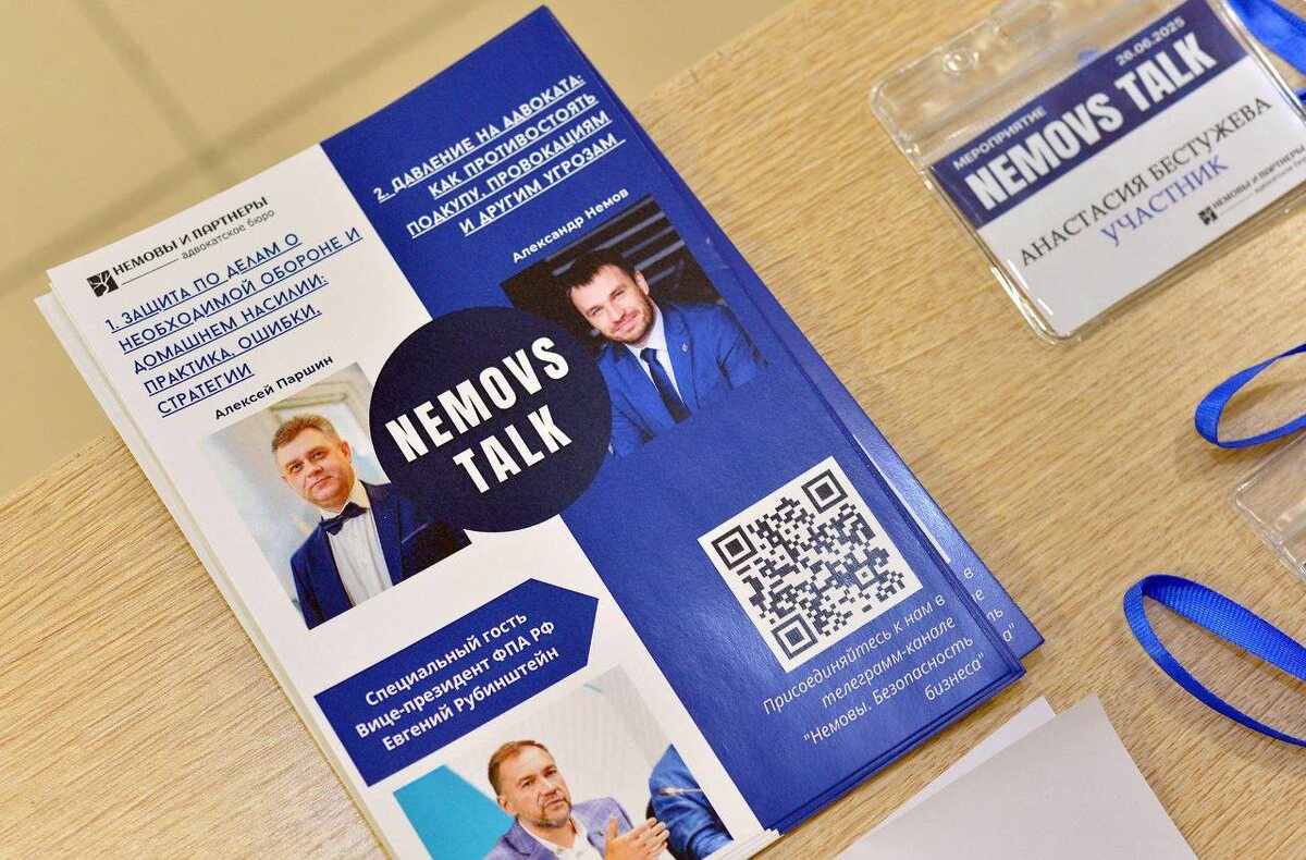 Вчера успешно прошло наше мероприятие NEMOVS Talk 2.0 В этот раз приглашенным гостем был Алексей Паршин - московский адвокат по громким делам, в т.ч. по делу сестер Хачатурян. Он поделился с нами своими лайфхаками, которые помогают добиваться успехов в уголовных делах по домашнему насилию и необходимой обороне. Выступил Управляющий партнер нашего бюро - Александр Немов, с актуальной на сегодняшний день (к сожалению) темой «Давление на адвоката». Поговорили о реальных способах защиты, не теряя при этом эффективности в работе даже по самым сложным делам. И специальным гостем нашего мероприятия был Вице-президент ФПА - Евгений Рубенштейн , с которым мы в открытом диалоге обсудили новые возможные изменения в уголовный закон, направленные на реальную защиту адвокатской деятельности от разного рода посягательств. Это было очень интересно, конструктивно и полезно! Мы благодарим всех участников, партнеров, спикеров, и ждём всех на наших следующих мероприятиях ❤️