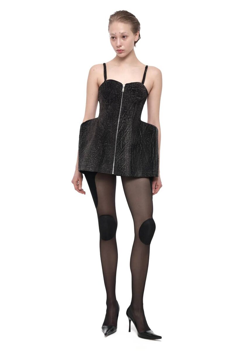 Миниатюрная архитектура или просто удлинённый топ CAPPAREL. Этот красавчик будто вылеплен по фигуре — с фигурным лифом, объёмной линией бёдер и молнией, которая делает образ ещё более выразительным. Фишка идеальной посадки кроется в широкой резинке на спинке: она подстраивается под разные типы телосложения, сохраняя баланс между комфортом и грацией силуэта. #РазгонМода_ВещьДня