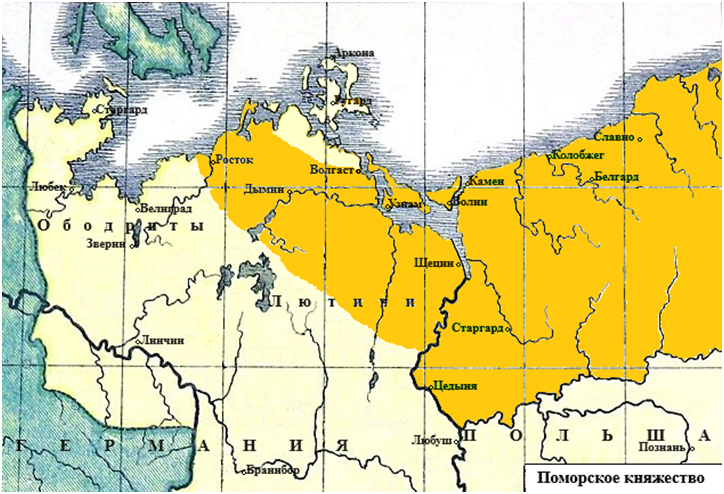Кстати земли прибалтийской Руси назвали Поморьем именно ляхи, как и эстиев или население Витланда пруссами. Вначале Поморьем именовалась лишь его восточная часть, по наименованию Дитриха поморским князем, которая после смерти сына короля Болеслава Мешко Второго обрела независимость. Позже в конце 11 века она вошла в состав западно-поморского княжества, где уже правила вендская династия Грифичей (вероятно искажение от Гриничей).