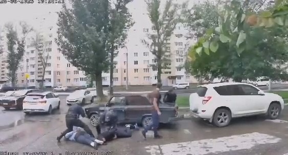 В Саратове камера домофона запечатлела жесткое задержание троих мужчин кавказкой внешности, которые пытались сесть в автомобиль.