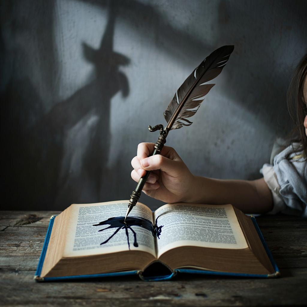 Дверь захлопнулась с глухим стуком, будто сама квартира вздохнула с облегчением, наконец заполучив свою хозяйку обратно. Алиса бросила ключи на тумбу, где они звякнули о стеклянную поверхность, нарушив тишину. Книгу она положила на стол с такой осторожностью, словно это была бомба с тикающим механизмом. Металлическое перо легло рядом, и в свете настольной лампы оно вспыхнуло неестественным ярким бликом — слишком ослепляющим для простого металла. — Полный бред, — прошипела Алиса, наливая в бокал вина. Рубиновая жидкость бурлила, когда она отпивала большой глоток, оставляя на стекле следы помады, похожие на капли крови на клинке ножа. Но несмотря на все попытки убедить себя в абсурдности происходящего, её пальцы сами потянулись к синему переплёту. Книга раскрылась с лёгким сопротивлением, словно не хотела раскрывать свои тайны слишком быстро. Запах ударил в ноздри — сладкий, удушливый, совершенно непохожий на обычный аромат старых страниц. Не бумага, не клей... Ваниль? Нет, что-то другое