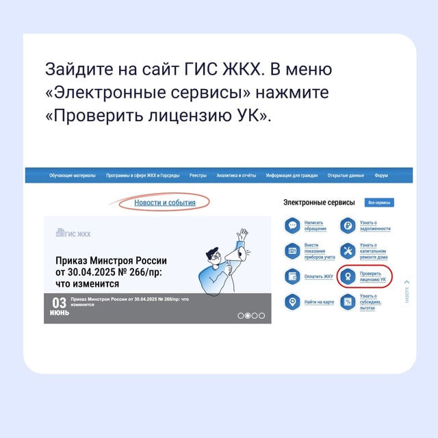 В системе ГИС ЖКХ размещены актуальные сведения об управляющих компаниях — в том числе данные о выданных и аннулированных лицензиях на управление МКД. Реестр содержит номер и дату выдачи лицензии, юридический адрес УК, ФИО руководителя, а также перечень обслуживаемых домов. Информация позволяет проверить легитимность деятельности организации и уточнить её полномочия. Как найти сведения — показываем в карточках.