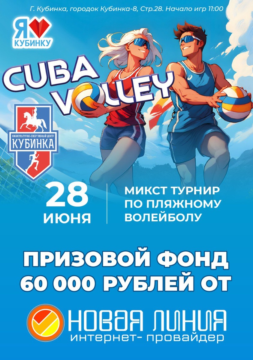💥💥💥 Открытый МИКСТ турнир по пляжному волейболу CUBAvolley 🗓 28 июня 2025 в 11:00 Организатор: МАУ ФСЦ "КУБИНКА" Призовой фонд 60.000 рублей от интернет-провайдера Новая линия 🥇 1 место 30.000 рублей 🥈 2 место 20.000 рублей 🥉 3 место 10.000 рублей Смотрите завтра прямую трансляцию в нашей группе ВК в поддерживайте участников! #спортивнаякубинка #мауфсц #волейбол #пляжныйволейбол #новаялиния