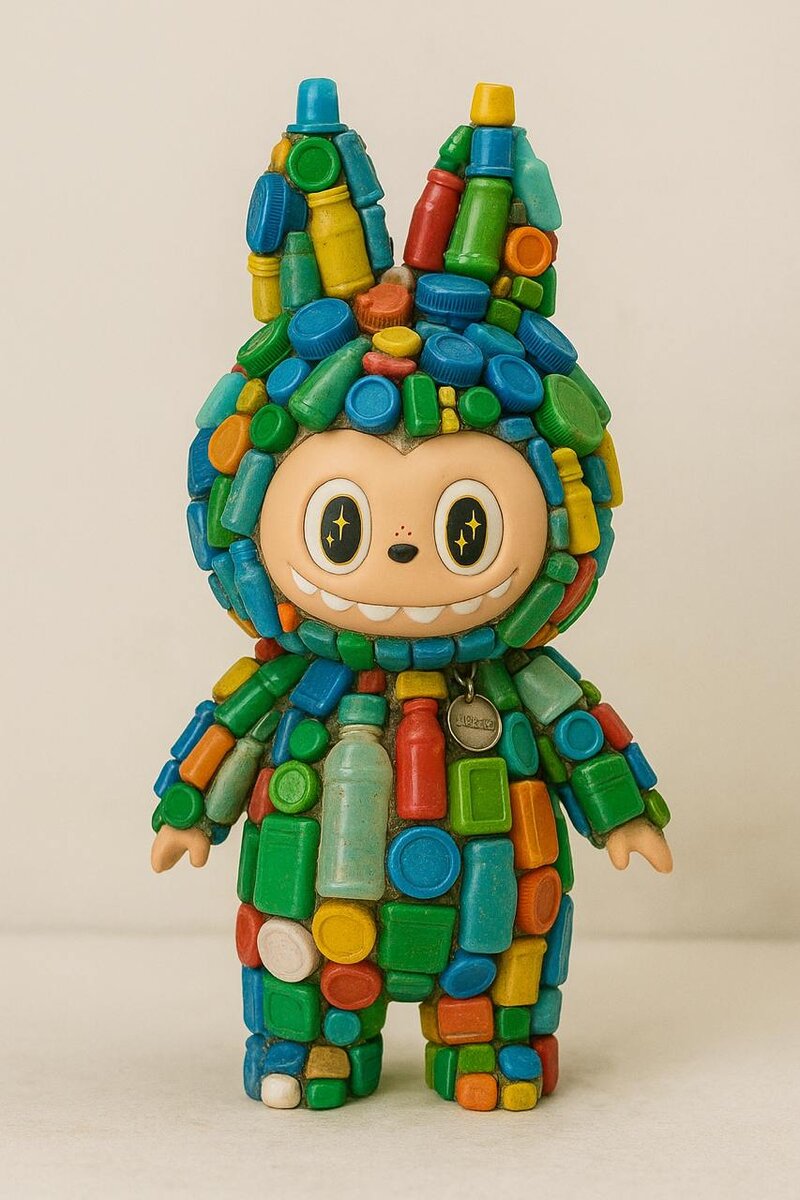 Мы решили представить, может ли Лабубу быть экологичной, и создали концепт фигурки из вторсырья. Такой обвес на сумке будет привлекать внимание к экологической повестке, а когда игрушка выйдет из моды — её можно будет сдать на переработку.