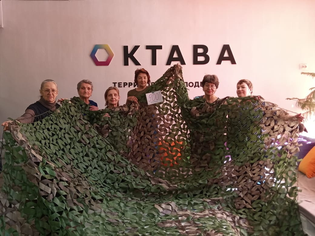 Так назвали себя участники отряда добровольцев, который занимается плетением маскировочных сетей, изготовлением окопных свечей, сбором гуманитарной помощи для бойцов специальной военной операции. Одна часть отряда базируется в Николо-Берёзовке, в Никольском храме, другая – в подростковом клубе «Октава». Сюда-то я и пришёл, чтобы познакомиться с ними, когда прочитал о них в нашей городской газете. Автор: С.ЛЮБАРСКИЙ. В основном это женщины-пенсионерки. Они приходят каждый день, как только позволяет время. Их никто не звал, но они иначе не могут – так велит сердце. Начинали ещё в подвале Дворца Молодёжи. Теперь уже трудно точно вспомнить, кто был первым. Кто-то узнал, что в зоне СВО очень нужны маскировочные сети. Как они выглядят – никто толком не знал. Стали собирать по школам старые волейбольные сетки, ремонтировать, оплетать тканью. Помогли ценные советы и опыт бойцов, приезжавших из зоны СВО. Они же стали первыми заказчиками и потребителями готовой «продукции». Постепенно подтягивал