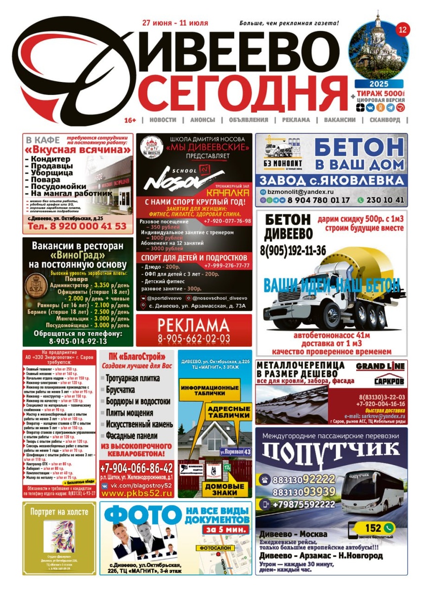 Дивеево Сегодня №12 (27 июня - 11 июля