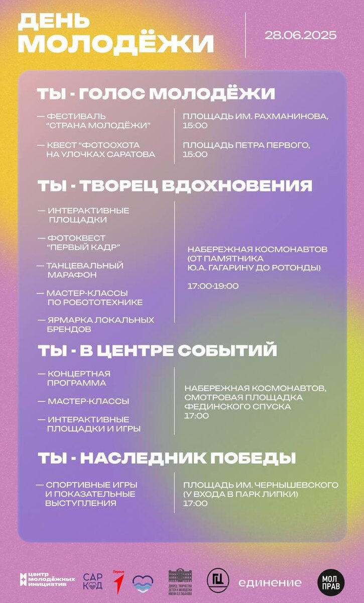‼️ Завтра отмечаем День молодёжи Программы мероприятий в Саратове и Энгельсе @relaxsaratov