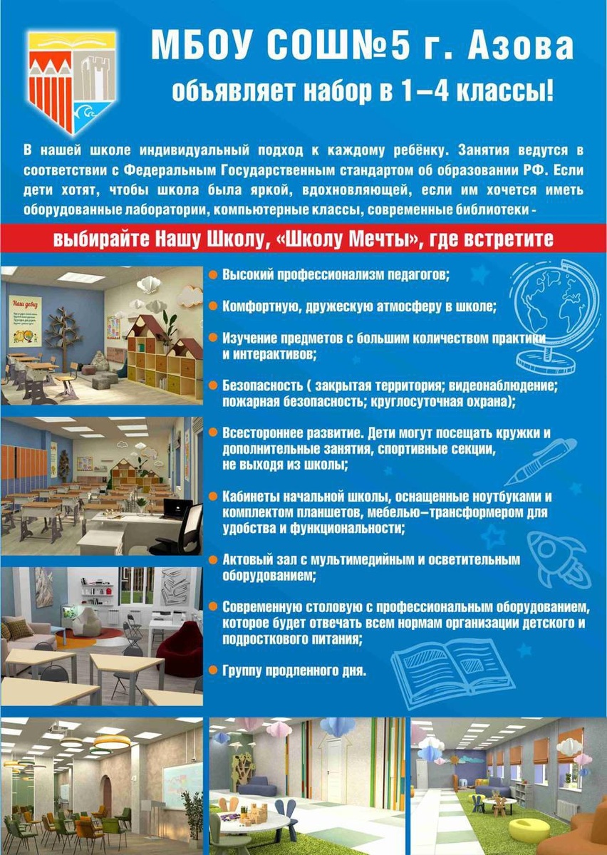 Школа 5 города Азова объявляет набор учащихся в 1-4 классы