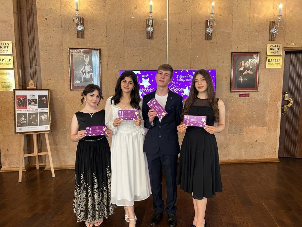 25 июня в Ростовском государственном музыкальном театре состоялся губернаторский приём выпускников «Золотое созвездие Дона». Учащиеся Чалтырской школы №1 Акопян Наира, Варткинаян Галина, Гетьман Роман, Тирацуян Александра и учащийся Чалтырской школы №2 Хачкиев Аркадий, кандидаты на награждение региональной медалью «За особые успехи выпускнику Дона», стали участниками этого мероприятия. В фойе театра были организованы фотозоны и выступления музыкантов. Гости также смогли написать пожелания первоклассникам, которые будут зачитываться на торжественных линейках 1 сентября. Собравшихся тепло поприветствовал и поздравил Врио губернатора Ростовской области Слюсарь Ю.Б. Выпускники смогли насладиться балетом Лео Делиба «Коппелия». Мы поздравляем ребят с участием в таком значимом мероприятии и желаем им дальнейших успехов в учебе и жизни. Надеемся, что их будущие начинания будут такими же яркими и успешными, как этот вечер в Ростовском государственном музыкальном театре! Отдел образования Мясник