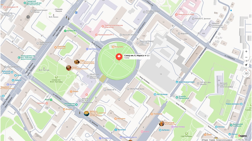 В Брянске временно разрешен сквозной проезд через сквер Карла Маркса