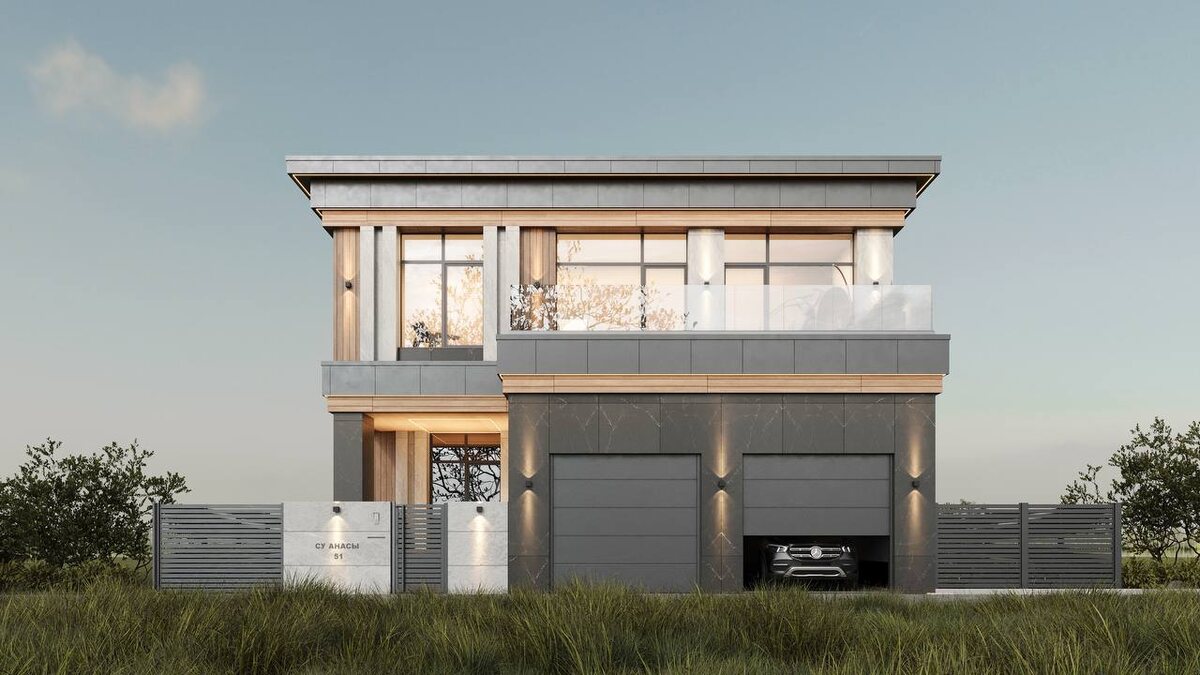 RIVERSIDE HOUSE | Дом с видом на Волгу Проект современного загородного дома на первой береговой линии в коттеджном посёлке «Волжская Гавань», г. Казань. Трёхэтажный объём с мощной геометрией выстроен вокруг главного ресурса участка — панорамного вида на реку. С первого шага за порог вы оказываетесь в пространстве, раскрытом навстречу природе: благодаря системе видовых осей и двусветному остеклению пейзаж Волги становится частью интерьера. Фасады сочетают несколько современных материалов: -крупноформатный керамогранит, -древесно-полимерный композит (ДПК), -алюминиевые композитные панели (АКП). Вертикали подчеркнуты декоративными колоннами, горизонтали — поясками из ДПК и АКП. Панорамное остекление усиливает ощущение открытого пространства, а вечерняя подсветка превращает дом в световую архитектурную композицию. Главная идея проекта — диалог с ландшафтом. Архитектура не конкурирует с природой, а становится её продолжением. 📌 Хотите дом с характером и видом, который не хочется за