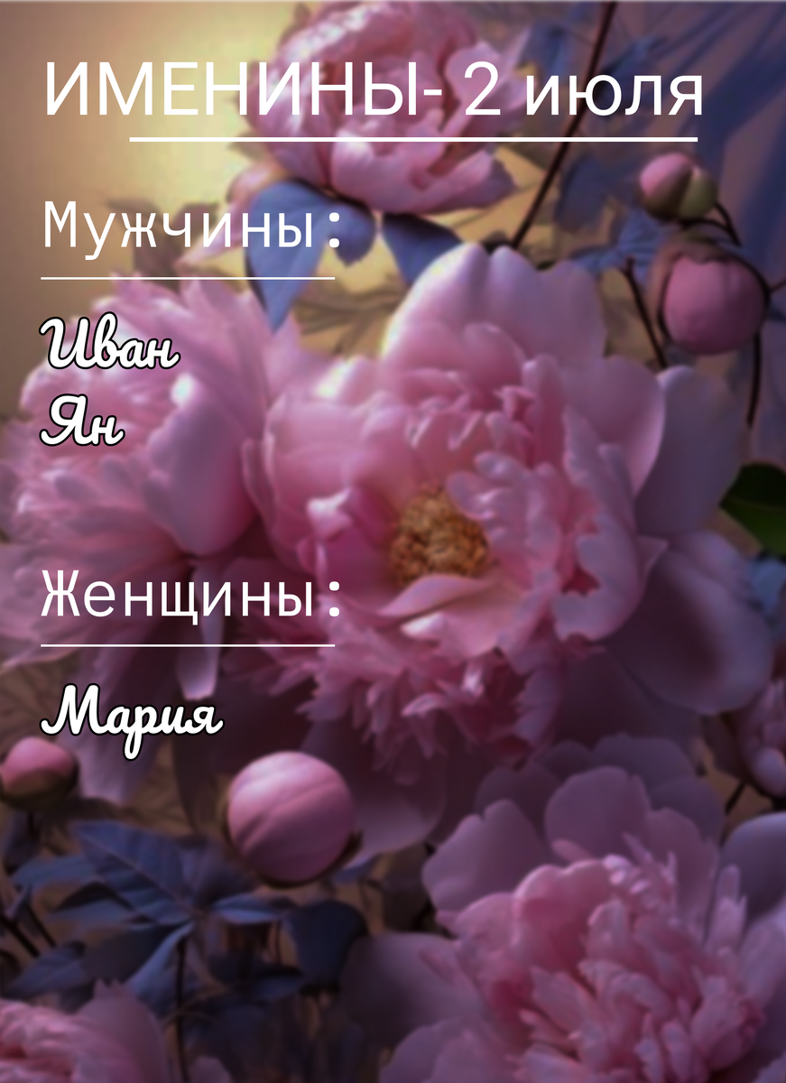 Мужчины: Иван- от древнееврейского имени Йоханан- «Яхве милостив», произошедшее от древнеиудейского имени Иоанн- «помилованный Богом». Ян (Жан)- польская, белорусская и древнерусская формы древнееврейского имени Йоханан, что означает «Яхве милостив». Женщины: Мария- от древнееврейского имени Мириам, что означает «желанная». «горькая», «безмятежная».