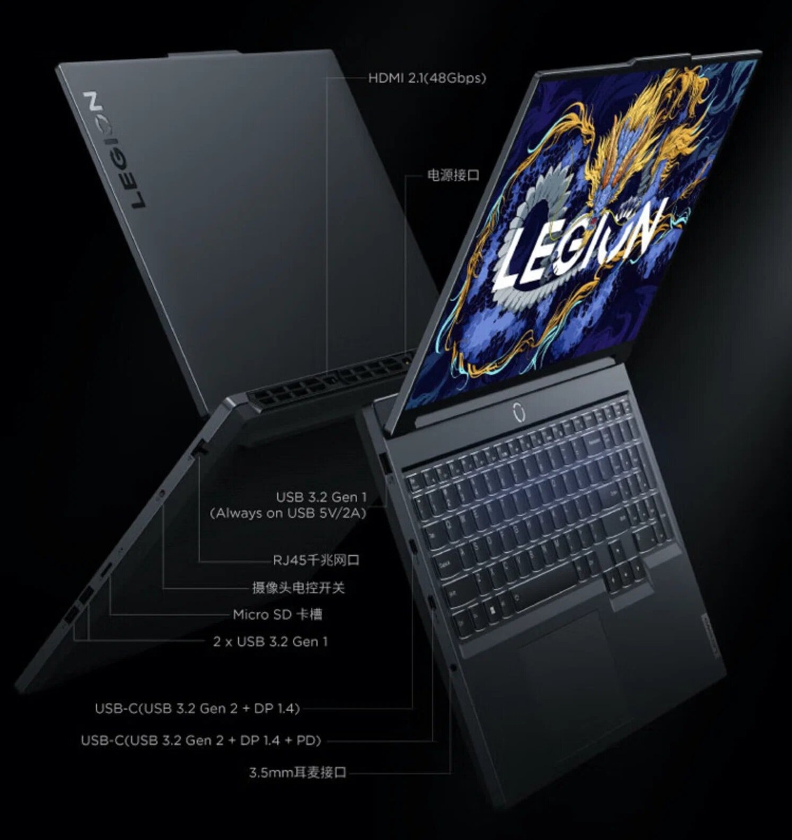 Внешне Y7000P сочетает строгость и стиль: чёрный корпус, минимальные игровые акценты и логотип Legion с LED-подсветкой. Он подойдёт как для дома, так и для офиса, не привлекая лишнего внимания.