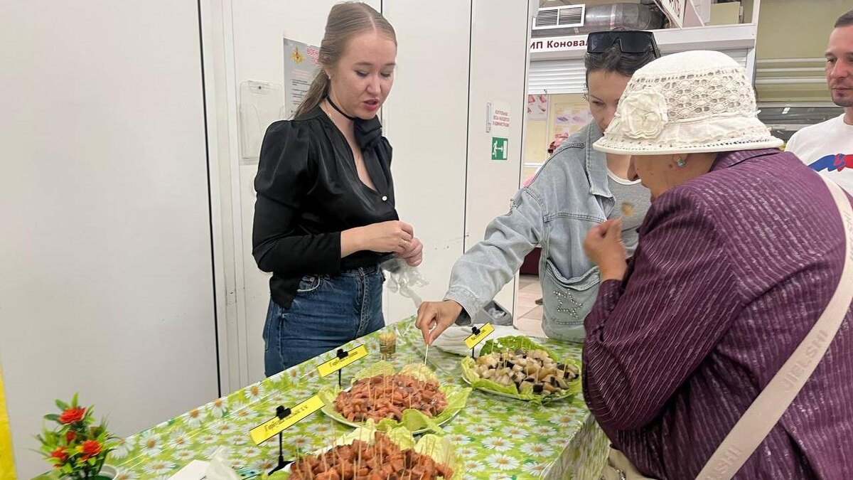 С 25 по 27 июня с 11:00 до 13:00 на ярмарке по адресу Большевистская, 131, новосибирцы попробовали колбаски, паштеты, конфеты, рыбу и другие продукты местного производства. Горсайт собрал аппетитные фото с дегустации. Внимание посетителей сразу привлекает ароматная рыба. У самого входа стоят три тарелки с морской продукцией: предлагают попробовать слабосолёную горбушу, балык и масляную рыбу. «Наше производство находится в Новосибирске на улице Игарской, 54. Рыбу привозят из Сахалина, с Камчатки. Мы обращаем особое внимание на качество: минимум химических ингредиентов. У нас представлены балычки холодного копчения, горбуша, кета, форель: всё отменного качества. Из новинок - северная рыба: омуль, чир. Ставрида у нас очень хорошая: можно сказать, её нигде в городе больше нет. Также мы заняли первое место в Новосибирске по качеству скумбрии и сельди. Стараемся ответственно подходить к производству, чтобы покупатель нас ценил», - рассказывает Лариса Калинкина, менеджер компании «Акватория».