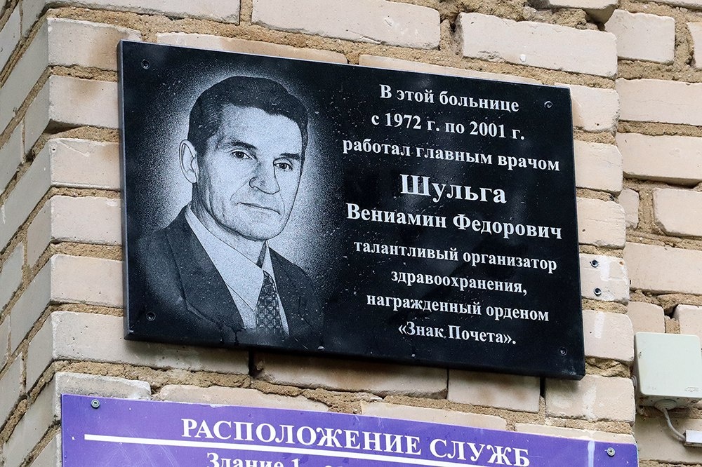 С сегодняшнего дня фасад Ашинской районной больницы №1 украшает мемориальная доска замечательному врачу Вениамин Фёдорович Шульга, 30 лет руководивший этой больницей, — человек с большой буквы