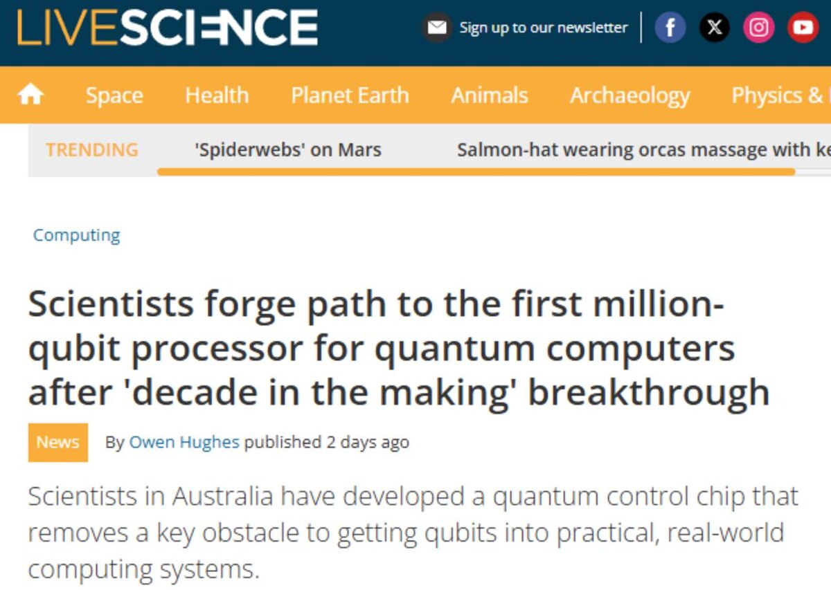 🧊 Millions of Qubits Now Feasible on a Single Chip Команды из Принстона и MIT совершили прорыв в квантовых технологиях: они создали криогенный чип, способный управлять миллионами кубитов на одном процессоре. Это решает одну из главных проблем квантовых компьютеров — масштабируемое управление и коммутация при сверхнизких температурах. До сих пор для каждого кубита требовался отдельный провод, что делало масштабирование невозможным. Новый чип кардинально упрощает архитектуру квантовой системы. 📈 Это открытие делает большие квантовые компьютеры не фантазией, а достижимой целью. Возможность разместить миллионы кубитов на одном чипе приближает нас к решению задач, которые невозможно посчитать на классических машинах. 🚀 Прорыв стал возможен благодаря междисциплинарной инженерии: сочетанию квантовой физики, электроники и системного дизайна. Это ещё один шаг к реальной квантовой эре вычислений.