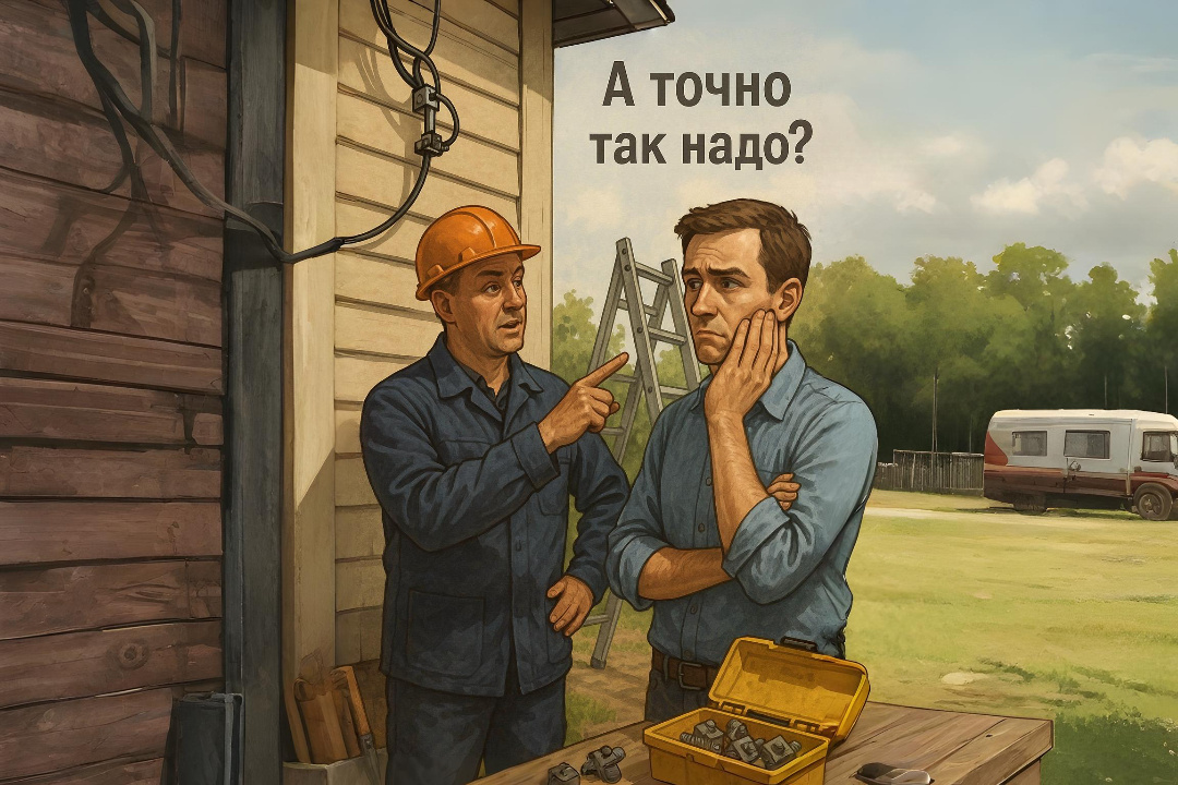Вы заказали монтаж электропроводки, электрик приехал, всё делает быстро, уверенно, но… как-то по-своему. Спрашиваете: — А это точно по нормам? — Да вы что, я 20 лет так делаю, всё нормально! Знакомо? А теперь разберёмся, что делать, если вы не уверены, а специалист настаивает, что “всё ок”. 🛠 "Так делают все" — не аргумент Электромонтаж — не область, где можно полагаться на “авось”. Даже если монтажник с опытом, у него могут быть устаревшие привычки. Например: Крепление СИП-провода без зажима, “на гвоздик” — до первой грозы. Фасадный ввод без изолятора — эстетично, но опасно. Сборка щита "на глаз", без учёта нагрузок — потенциальный перегрев. ❗️ Главное правило: “так всегда делают” — не значит правильно и безопасно. ✅ Что делать? 1. Спокойно попросите объяснить — На каких нормах или правилах основано решение? — Есть ли схема или проект, по которому он работает? 2. Проверьте сами (или дайте проверить) Есть масса доступных источников: ГОСТ 31996-2012 (по СИП), ПУЭ (Правила устройства эл