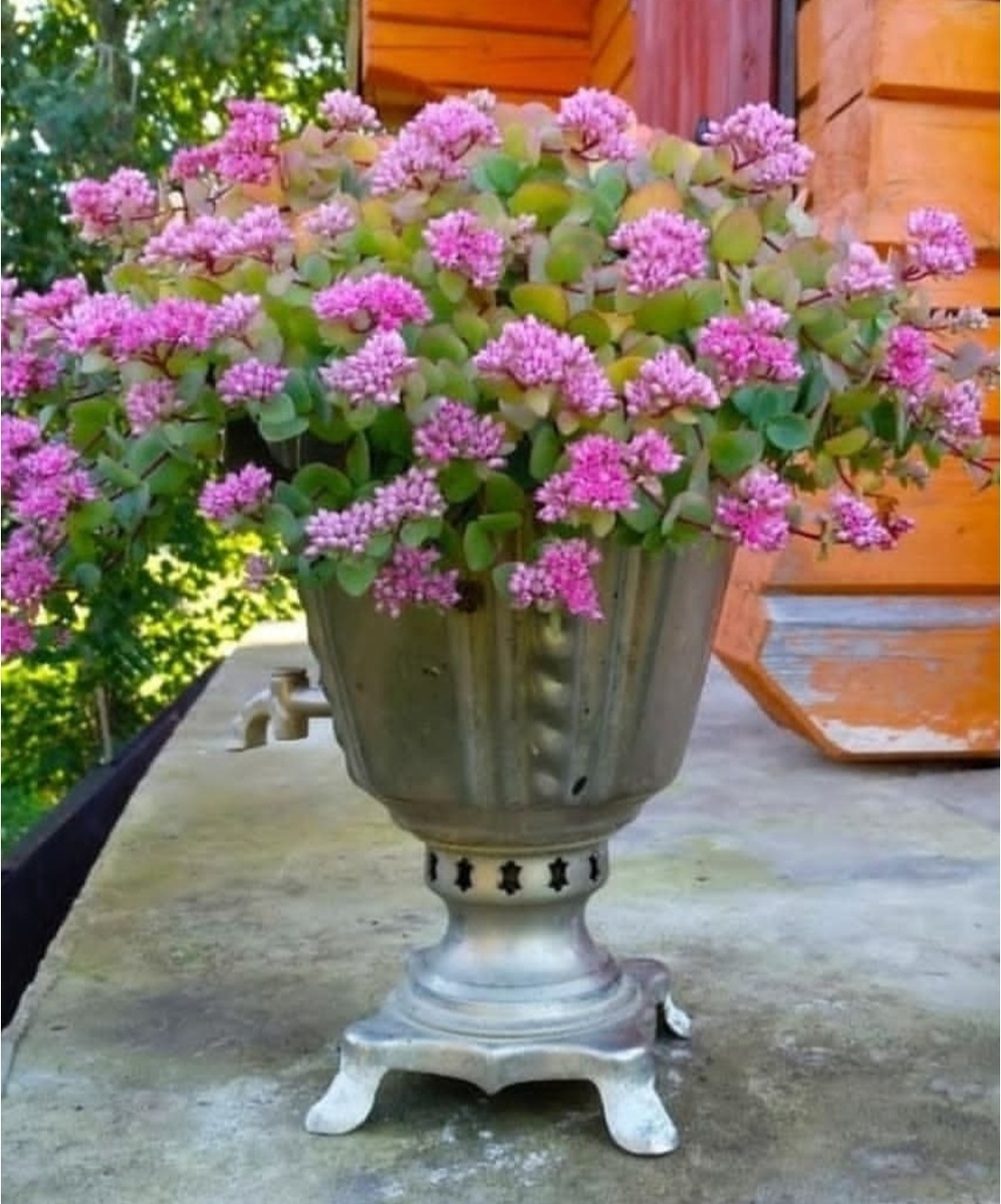 "Выбросите то, что не приносит вам радость",- такая фраза неоднократно попадалась мне на просторах интернета. Но тут ведь как посмотреть☝️ . Бывает так, что сломалась, или вышла из строя какая-то, ранее любимая вещь. Какая уж тут радость? А выбрасывать рука не поднимается. Так, например было с моим самоваром, который уже несколько лет с седумом Эверса гуляет по интернету. И каждое лето, когда он вновь зацветает - приносит мне радость. . Иногда, приходит мысль, что я превращаюсь в барахольщицу🤔 Чтобы так не думать обидное слово "барахольщица" я заменила на "куратор ностальгического музея собственной жизни"☝ Весной достала из гаража керамический горшок, а с него краска посыпалась. Ну вот опять какая уж тут радость? . Керамику я очень люблю. После операции, чтобы восстановить душевное равновесие, занималась в студии керамики. Мне так нравилось работать с глиной. И как после этого выбросить горшочек? Носилась я с ним по участку и нашла все же "керамическому пенсионеру" пристанище. . К