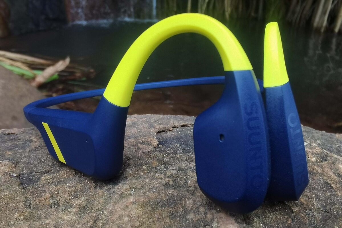 Suunto Aqua имеют типичную для наушников с костной проводимостью конструкцию: небольшие излучатели прижимаются к верхней части скулы, отходящие от них крючки огибают ушную раковину сверху, переходя в компактные блоки с электроникой, которые затем соединяются упругим затылочным ободом (18 см), обеспечивающим необходимое прижатие. При этом слуховой проход остается свободным, а музыка передается не только звуковыми волнами, но и механическими колебаниями корпуса динамика.