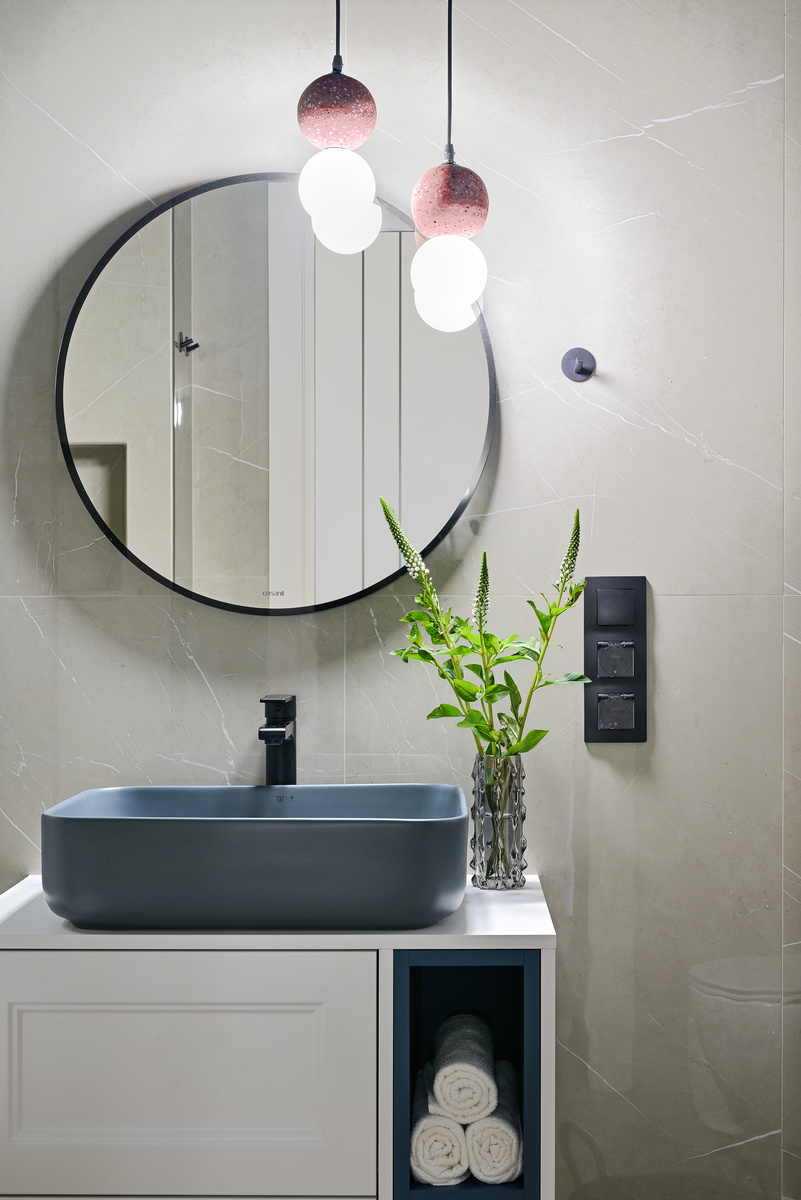 После укладки ванная комната преобразилась: стало больше света, добавилось шарма и натуральности. Мастер уложил плитку безупречно — швов почти не видно. Как я читала в отзывах, мастера действительно более лояльны к крупноформатному керамограниту.