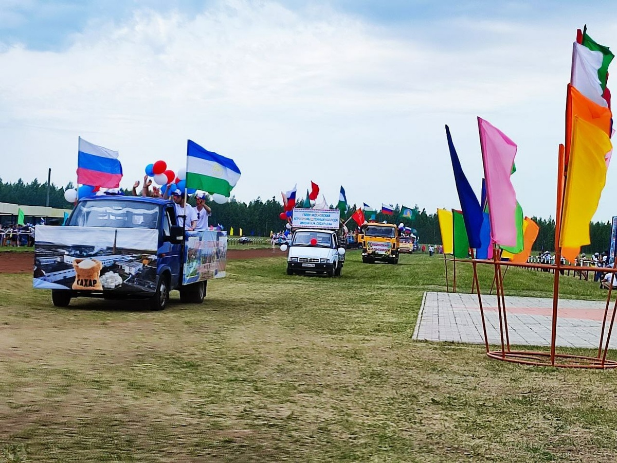 Почетная миссия открытия сабантуя издавна принадлежала аксакалам. Вот и в этот раз она выпала уважаемым ветеранам труда – Фариту Хайбрахманову, Салавату Файзуллину и Анатолию Кудисову. Самые титулованные спортсмены района - тяжелоатлеты Рифат, Альбина, Булат Минияровы и Амир Хабутдинов выносят флаг праздника, его торжественно поднимают передовики сельхозпроизводства: тракторист-машинист фермерского хозяйства Дибаевых Ринат Дибаев и агроном ООО «Канаш» обособленного подразделения Гайны Резеда Осипова. Начинается парад. Перед трибунами с песнями под гармонь проходят красочные колонны сельхозпредприятий, фермерских хозяйств и сельских поселений, учреждений социальной сферы района.