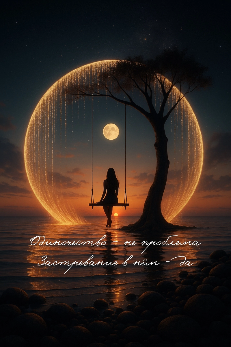 Иногда одиночество — это пустая квартира после ссоры. А иногда — глубокий вдох на вершине: ты один, но по-настоящему живой. Может, одиночество — это не отсутствие кого-то, а наконец-то присутствие себя? Ты чувствуешь, что: – Тишина будто давит. – Лента полна счастливых лиц, а внутри пусто. – Душа помнит, как это — быть нужной. Это не про слабость. Это про голод по настоящей близости, где тебя принимают без маски. Ты сам себе — друг. – Никаких объяснений. – Жизнь по своим правилам. – Ты не пуст — ты целостен. И делишься из полноты, а не из дефицита. Парадокс: когда перестаёшь бояться быть один — ты начинаешь притягивать людей, не цепляясь за них. Если тяжело — не убегай в дела или случайные связи. Посмотри: что говорит тебе пустота? Если хорошо — проверь: это зрелость или броня? Ты не прячешься за «мне и так норм», чтобы не рисковать открыться? Шаман уходит в лес. Монах — в молчание. Герой — в путь один. Чтобы встретить себя — без чужих отражений. И только потом — встретить настоящего