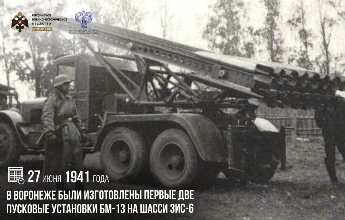 27 июня 1941 года в Воронеже были изготовлены первые две пусковые установки БМ-13 на шасси ЗИС-6