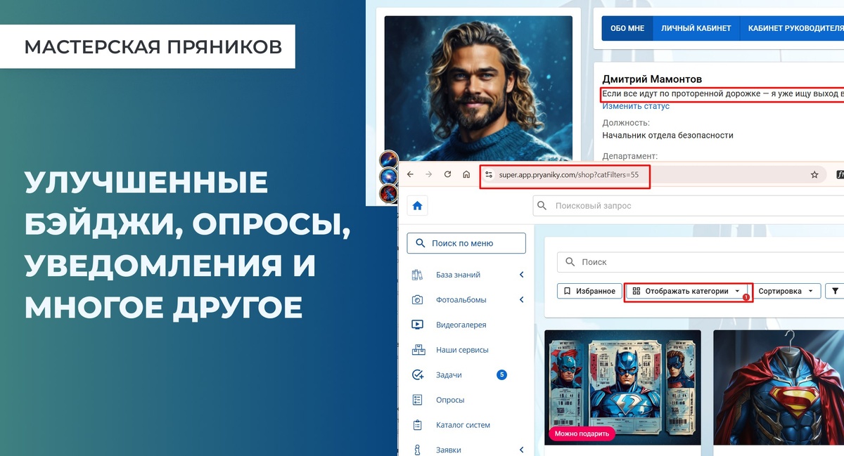 На платформе появились обновления, которые делают работу ещё удобнее: теперь можно настраивать порядок бейджей и их категорий, добавлять плейсхолдеры в письма, сохранять пользовательские данные при синхронизации и делиться ссылками на отфильтрованные товары из магазина. Подробности > blog.pryaniky.com/pryanichnye-novinki-0627/