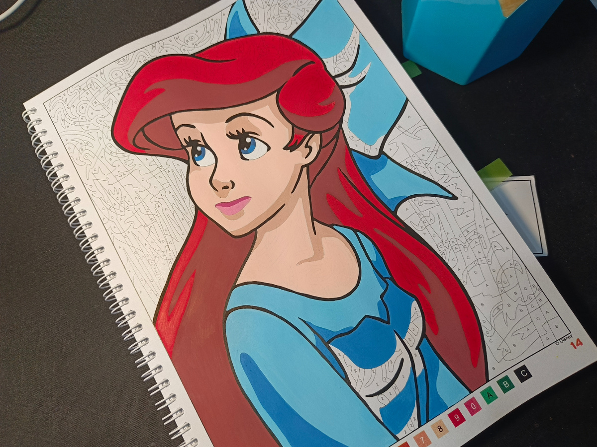 Честно говоря, в этом месяце меня захватили раскраски по номерам от Ашет. Ещё месяц назад я вообще не планировала покупать раскраски с мультфильмами Дисней. А сейчас у меня уже три репринта и один оригинал🙈 На покупках пока стоп)). Хочу продвигать эти. Покажу последнюю работу, которая сейчас в процессе. С удовольствием раскрашиваю Русалочку. Скоро в итогах за месяц покажу результат.