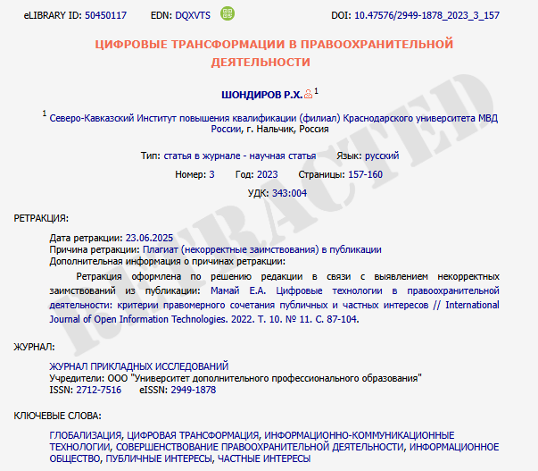 - и второй “автор” ШОНДИРОВ Р.Х. (статья была опубликована в журнале "Журнал прикладных исследований")